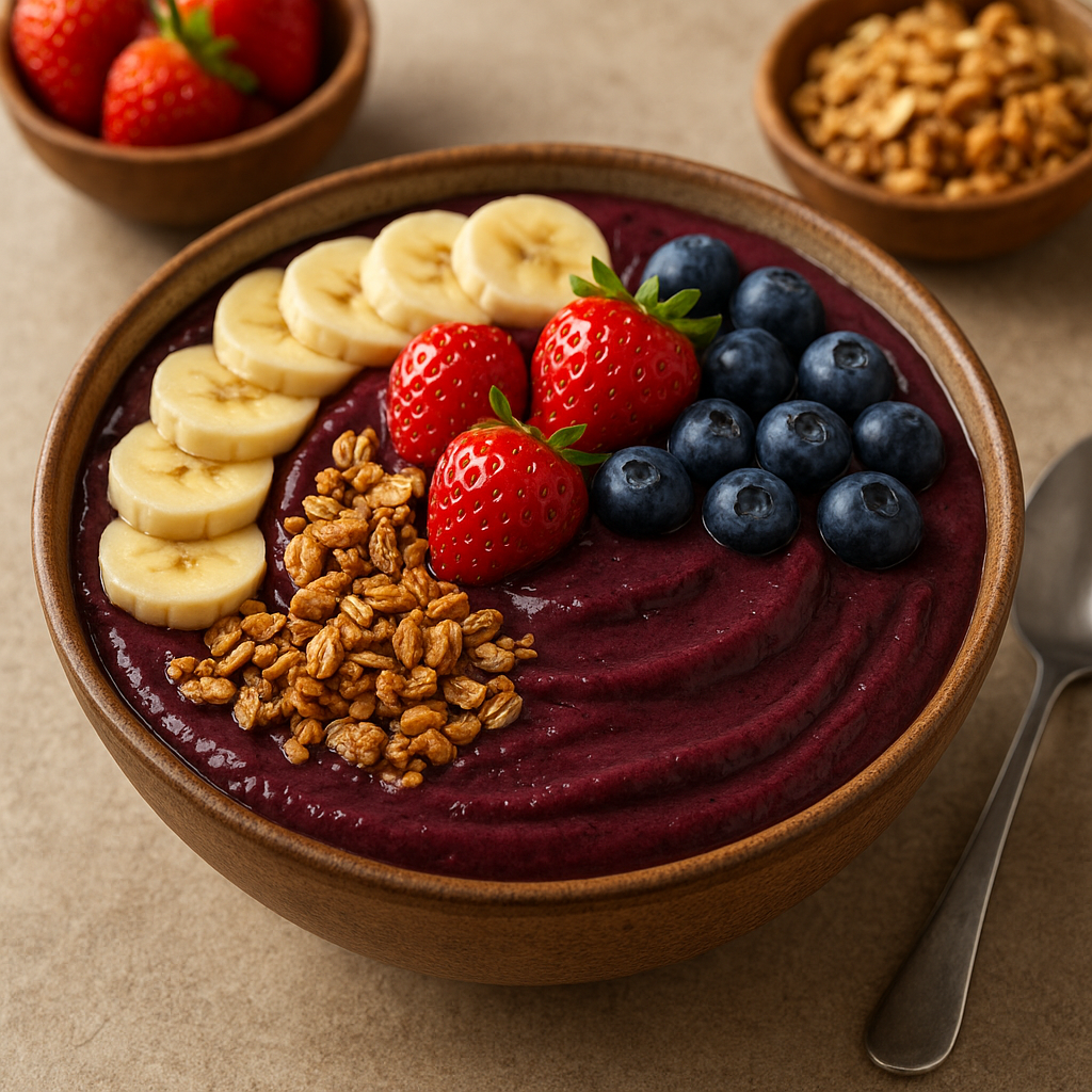 - Açaí bowls — miski z puree açaí, owocami, orzechami i płatkami