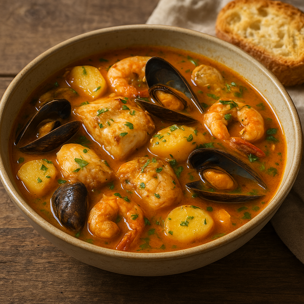 - Nie rozgotuj ryb: Filety i skorupiaki gotują się krótko — dodawaj je dopiero pod koniec, żeby pozostały jędrne.