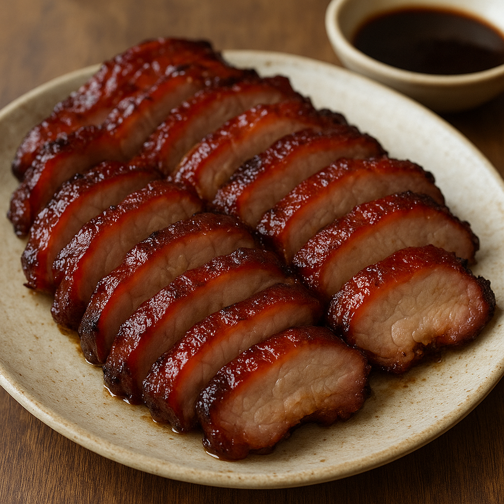 • Składniki: 800 g karkówki lub łopatki, 3 łyżki sosu sojowego, 2 łyżki sosu hoisin, 2 łyżki miodu (plus dodatkowa łyżka do smarowania), 1 łyżka oleju sezamowego, 1 łyżeczka przyprawy pięciu smaków, 2 łyżki cukru brązowego, 1 łyżka wina ryżowego lub sherry, 2 ząbki czosnku (zmiażdżone).