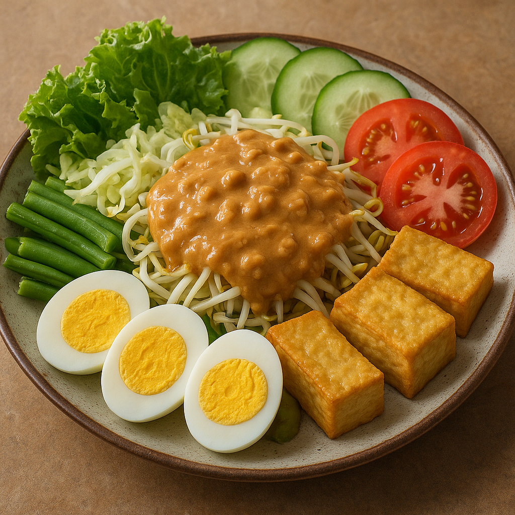 Gado-gado może być świetnym elementem diety wegetariańskiej i wegańskiej (jeśli pominiesz jajka lub zastąpisz je innymi źródłami białka) oraz daniem bogatym w składniki odżywcze. Zbilansowana porcja dostarczy energii, zdrowych tłuszczów i białka roślinnego.