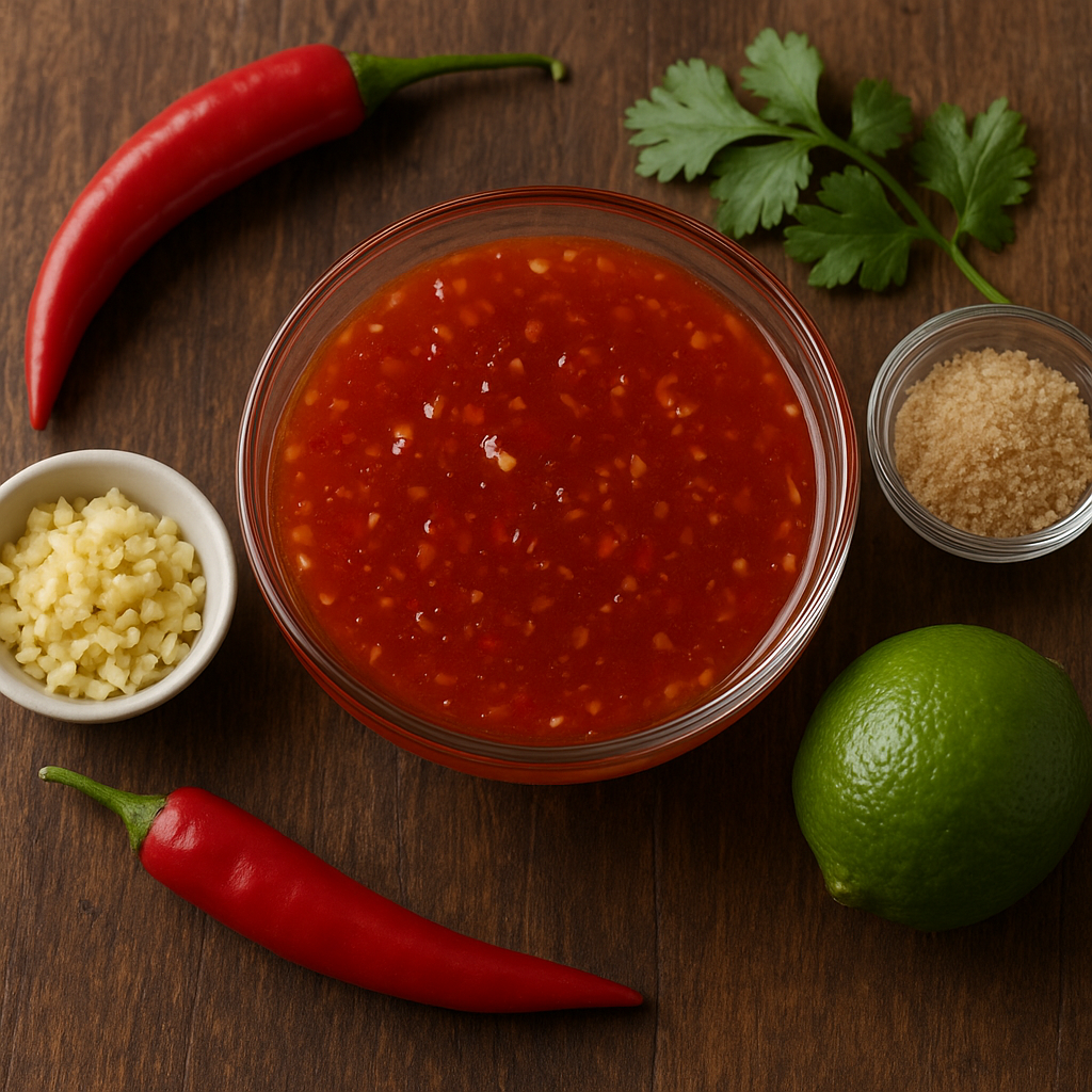 Przygotowanie sosu zaczynamy od zagotowania w niewielkim garnku wody z octem i cukrem, mieszając aż do całkowitego rozpuszczenia kryształków. Następnie dodajemy czosnek, imbir i papryczki, a po chwili sos pomidorowy oraz sos rybny. Gotujemy na małym ogniu przez około 5–7 minut, cały czas mieszając, aby konsystencja stała się lekko gęsta i błyszcząca. Po wystudzeniu możemy przetrzeć całość przez sitko, jeśli preferujemy bardziej aksamitną strukturę.