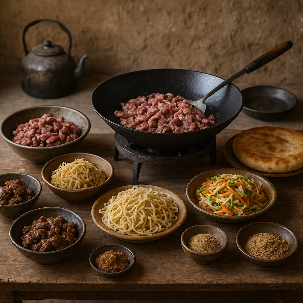 Kuchnia Mongolii wykształciła się w warunkach surowego klimatu i potrzeby przetrwania podczas wędrówek koczowniczych plemion. Nomadyczny styl życia i ciągłe przemieszczanie wymagały prostych, ale pożywnych posiłków opartych przede wszystkim na baraninie oraz produktach mlecznych. Już w XIII wieku podróżnicy przekazywali opowieści o jurtach, w których zapach gotowanego mięsa mieszał się z aromatem suszonych ziół i czosnku.