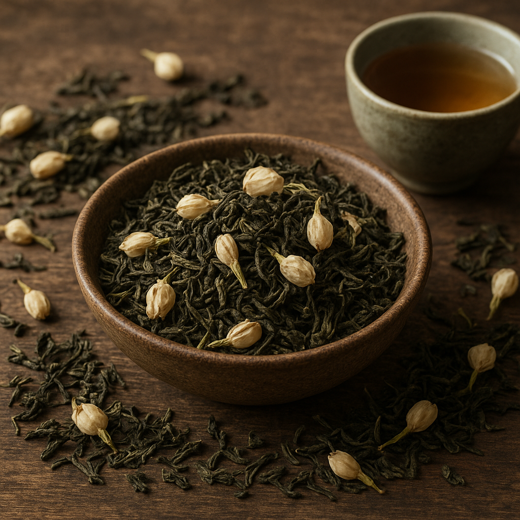 Korzenie herbaty jaśminowej sięgają Chin, gdzie przez wieki rozwijano techniki łączenia liści herbacianych z kwiatami jaśminu. Najsłynniejsze regiony produkcji to prowincje Fujian i Zhejiang, chociaż uprawy i wytwarzanie występują też w innych częściach kraju oraz w Azji Południowo-Wschodniej. Tradycja aromatyzowania herbaty jaśminem datowana jest na dynastie Ming i Qing, kiedy to mistrzowie herbaty doskonalili metody warstwowania i fermentacji, aby zachować trwały i naturalny zapach kwiatów.