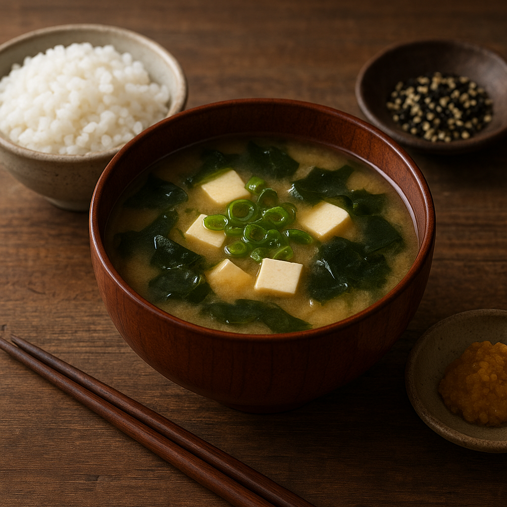 - Zupa miso — klasyczny japoński bulion dashi z dodatkiem rozpuszczonej pasty miso; dodatek miso wprowadza charakterystyczne umami i głębię smaku.