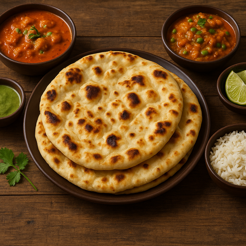 • Kaloryczność: klasyczny naan (ok. 100–150 g) może mieć 250–400 kcal, w zależności od składników i ilości tłuszczu.