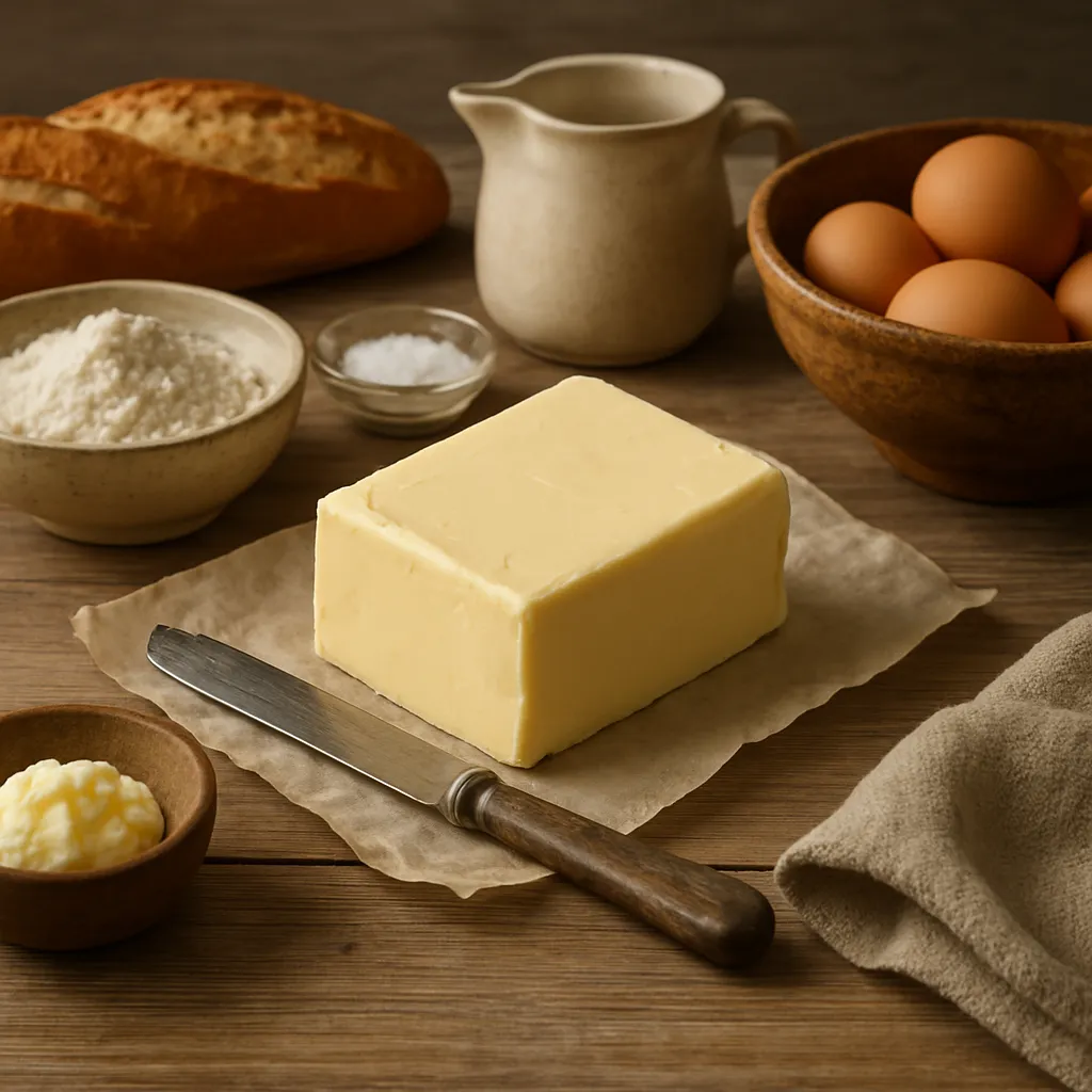 - Masło kulturowane (beurre laitier) — śmietana poddana fermentacji, dająca bogatszy, lekko kwaskowy aromat.
