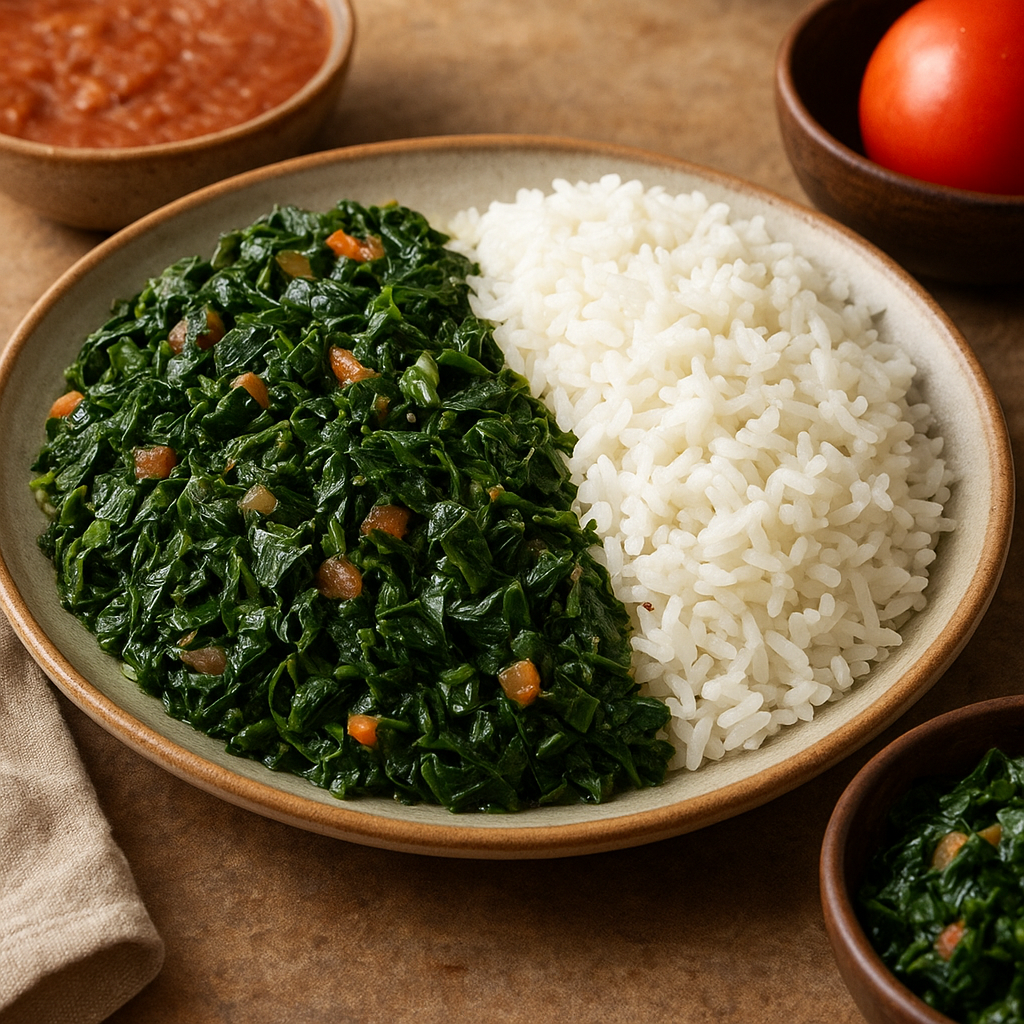 - Składniki: 1 duży pęczek sukuma wiki (ok. 500–700 g liści przed oczyszczeniem), 1 duża cebula, 2–3 pomidory lub 1 puszka pomidorów krojonych, 2 ząbki czosnku, 2 łyżki oleju roślinnego, sól, pieprz, opcjonalnie chili.