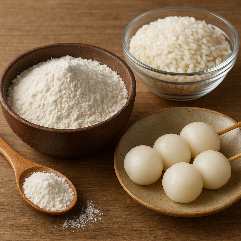 - Sweet rice flour (mochiko) — mąka z kleistego ryżu, nadaje się do mochi i daifuku.