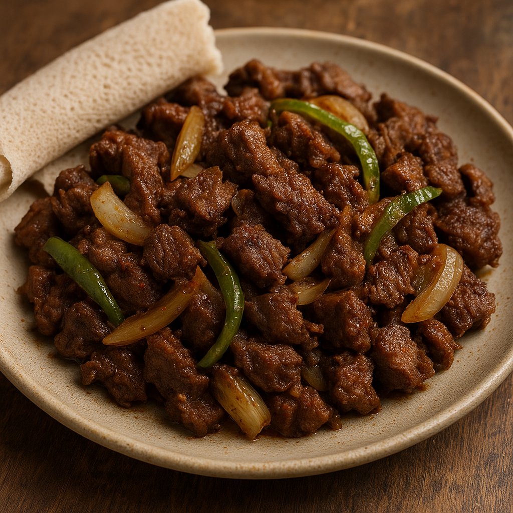 - Firfir tibs — podawane z poszarpaną injerą i gęstym sosem.