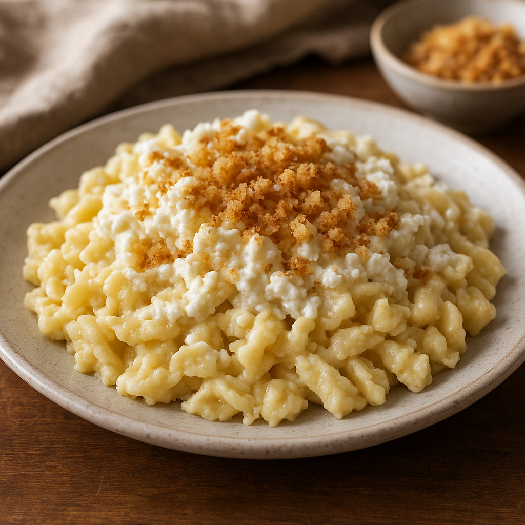 Klucz do udanego Túrós csusza to temperatura i proporcje: makaron powinien być gorący, by ser nie zastygał, a tłuszcz ze słoniny powinien być aromatyczny i dobrze rozprowadzony.